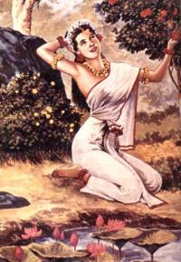 มาพบเข้า จึงให้นางนามว่า ศกุนตลา ซึ่งแปลว่านางนกและนำกลับไปเลี้ยงดูอย่างธิดาที่อาศรมของตน ต่อมานางเติบโตเป็นสาวแรกรุ่นที่งดงามอย่างหาที่ติไม่ได้ ดังคำบรรยายที่ว่า...